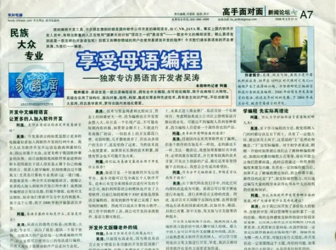 易语言登上新闻论坛报纸截图:步履蹒跚六十年:中文编程史话 - 知乎 (zhihu.com)