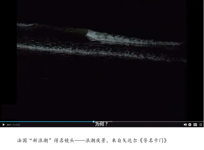 1958年11月,巴赞病逝,仰仗他的余威,特吕弗还延续了两三年“召集人”或“奠基人”的话语权,但他终未征服戈达尔,令其心服。二人翻脸后,“新浪潮”分崩离析,随之告罄。平心而论,特吕弗的影像尤其长镜头在当时很新颖,他的敬业精神格外令人钦佩,但其革新胆略与创新韬略远不如戈达尔。特吕弗成就了“新”,戈达尔成就了“浪”,掀起了“潮”,后者《芳名卡门》中浪奔浪流、潮起潮落的日景与夜景是“新浪潮”得名之最佳注解,戈达尔的“浪潮夜景”由此成为影史经典镜头,是他跻身世界一流导演之惊鸿一瞥,千钧一发。戈达尔的一系列影片,无疑是二十世纪六七十年代的先锋影像实验,是对美国好莱坞商业电影的挑战与嘲讽,刷新了长期积重难返的电影语言,也是对现代主义艺术的极大推动,蕴含着十足的文艺革命能量。戈达尔的剧情,直接率性,将人生简化为性爱与死亡,打破了半个多世纪来电影培育的芸芸受众了然于胸的规则、套路、模式与窠臼,他常常融故事片、纪录片、动画片直至实验短片等各片种于一炉,烩剧情、爱情、悬疑、惊悚、警匪、侦破、伦理甚至色情等类型于一锅,同时还充斥着跳切、越轴、回环移摄等目不暇接的新奇技法,以及他力图从作者导演转为学者导演的哲性探索,这集中体现于他的封镜之作——《Adieu au langage/再见语言》(2014)中。对西方哲学史熟悉的受众从片名便可窥嗅一二,戈达尔试图用毕业经验彻底颠覆电影语言,与现代以来西方哲学的语言转捩呼应,在本身就是视听语言集大成的电影中质疑视听语言的本体性与主体性,探寻视或听作为语言的文本间性,探询电影作为艺术的主体间性。吃了一辈子电影饭的戈达尔砸了电影的锅,否认了一切,从口头语言、文字语言、视觉语言、听觉语言到电影语言,从所指与能指,从艺术到社会,甚至否定了逻辑与理性。他让电影变成了一团混沌,《再见语言》充斥着粗糙的风景与粗愣的人物,粗粝的影像与粗暴的叛逆,戈达尔在各种艺术中横冲直撞,纵横捭阖,七进七出,杀得昏天黑地。受众不敢相信戈达尔返老还童,只愿相信他把各种图像与多种影像随意拼接之任性与率真,不论观众膜拜还是批评,戈达尔导演生涯的谢幕之作确实是他毕生笃信的艺术理念之璀璨花火。他从不认为艺术有高低贵贱之分,更不相信什么艺术进化论,也不认为耄耋耆宿会比稚嫩顽童具有更强的艺术想象力,还不看好人类的理性会剪除人类的劣根性,戈达尔证成了“电影是每秒24格的真理”,用电影向这个世界做出了负责任的交代。不过,电影的事再大也不是什么大事,电影永远不如教育重要。在比教育更重要的存在面前,比如社会,比如法律,比如宗教,比如道德,电影更是不值一提。巴赞率“五虎将”发起的“新浪潮”,最大的价值不在于他们拍出的一系列影片,而是其追寻的道德自由与理想人生,更在于电影作为教育公器与教育场域的社会学价值,这些才是“新浪潮”最珍贵的蕴涵,亦是它历久弥新令人怀念之根由。