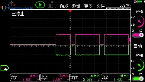 可以看到这是一个符合 TTL 标准,幅度为 3.4V 的波形。