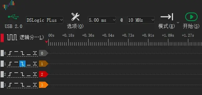 在DSLogic Plus中,可以选择任意通道对波形进行采集。我们使用 1 通道来采集 CAN-FD_L 信号。