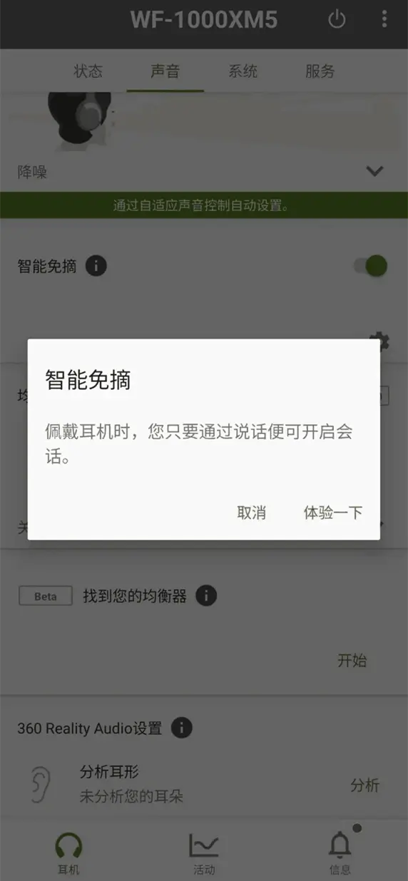 相比上一代耳机,WF-1000XM5进行了全新升级,由上一代的单芯片升级到双芯片,麦克风数量也从原来的2个麦克风升级到6个麦克风,驱动单元也从6毫米变成8.4毫米,声场比前代更宽广,人声背景声区隔更明显。通过耳机内置陀螺仪,可以识别用户头部旋转动作,接电话可以通过点头或者摇头的方式来实现接听电话或是挂断电话。借助基于360RA(360临场音效)新研发的头部追踪技术,WF-1000XM5支持头部姿势控制,当用户移动头部时,声音方向也会做出相应改变。配合使用索尼XPERIA 1 V,打开APP进行设置就可以体验多维空间中流动的乐章,享受更沉浸式的环绕立体音效和优异的音场空间感体验。WF-1000XM5还大幅提升了通话品质,通过骨传导技术可以有效抑制噪音,让通话质量显著提高。