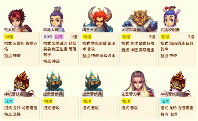 魏王战斗可先点杀大将军夏侯(虎头怪)、司马太傅(逍遥生)。大将军夏侯(虎头怪)物理伤害较高,司马太傅(逍遥生)在后面的回合会不断封印干扰,武猛校尉典(龙太子)用日月乾坤的几率比较小。