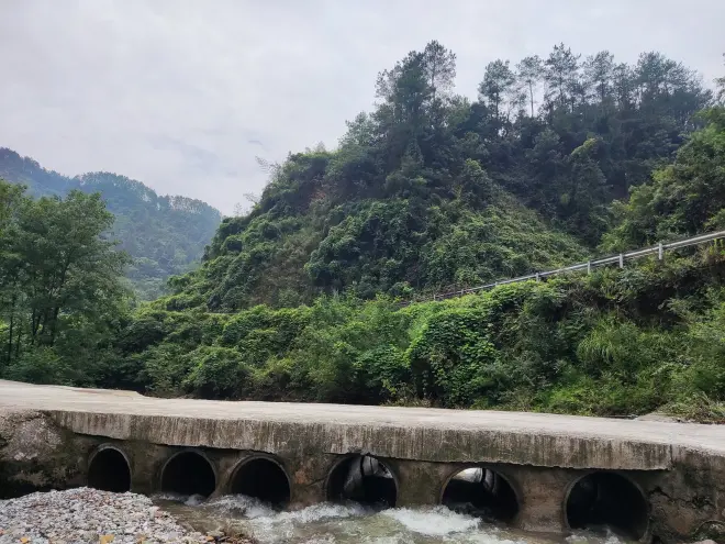 跨过长江大桥,算是正式出了忠县县城了。这里给了左右两条路,一个上坡一个下坡。我毫不犹豫的选择了下坡。这条路刚开始还是真好,双向六车道。应该是这次骑行最宽的路了。后面就要拐入乡道,乡道的尽头就是G350国道。这一路虽然是上坡,但骑行感觉还不错。有山有水还有树荫遮挡。车也是偶尔过一辆。所以并没骑的很快,想吸收下这天然的氧吧资源。放松下连日以来的紧张情绪。因为过了这座山,就离目的地利川不远了。