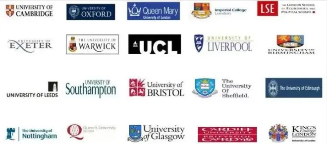 包括布里斯托大学、格拉斯哥大学、伯明翰大学、谢菲尔德大学、利兹大学、南安普顿大学、诺丁汉大学、利物浦大学、杜伦大学、圣安德鲁斯等大学、兰卡商学院、巴斯商学院。