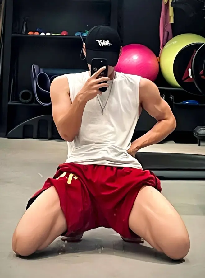 即便小哥哥穿上衣服,没有秀半点肌肉,但是这种体育生的猛男气质还是很诱人,尤其是穿着棉袜和拖鞋在健身房里行走,这种慵懒又荷尔蒙爆棚的感觉,估计没有几个宝宝可以拒绝他吧!
