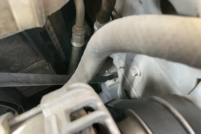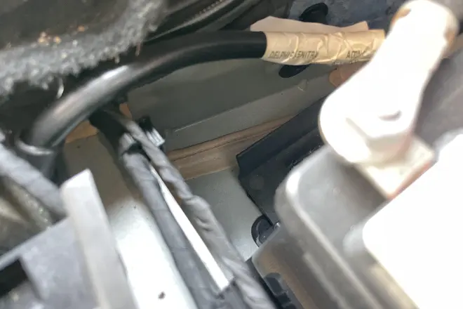 透过缝隙检查车辆水箱框架、纵梁等结构部位未发现事故修复痕迹,这些都是车子相对靠前的结构部位,如果没有问题,那也基本可以说明车子前部没事故。当然,大灯的更换也不排除车子前部发生过碰撞,或许撞的没那么严重,扩损也是有可能的,毕竟现在这种事儿也不算少见,都是为了挣钱,可以理解~