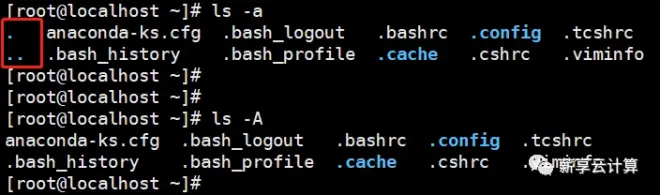 注意:ls -a 命令下面显示的 . 和 .. 两个特殊文件功能分别是