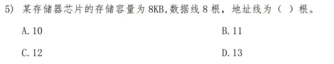 存储单元的个数地址线的条数=2的n次方,计算得n=13。