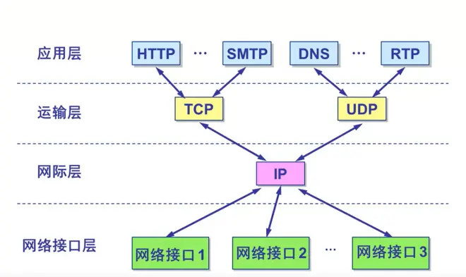 TCP/IP参考模型包括4层:应用层,运输层,网际层和网络接口层。TCP提供运输层服务,IP提供网际层服务。