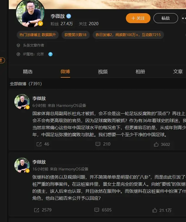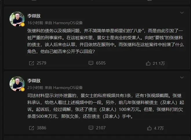 在张继科泄露前女友景甜私密照这一舆论事件,首当其冲的是一个微博大V李微敖