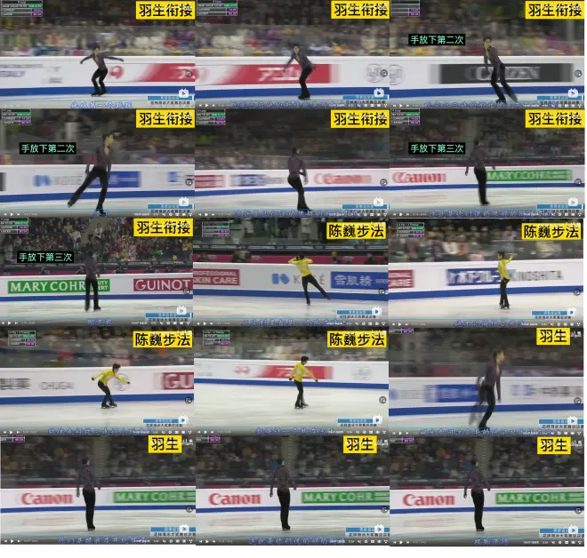 部分羽生粉一直在传某站的UP主“曲教练”说所谓“手部衔接问题”。据我所知说这事的人没几个看过视频的。我现在把截图放在下面请自行品鉴。阅读顺序是左到右、上到下。