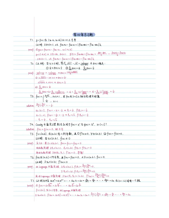 高等数学(北大版)笔记习题(4.x)微分中值定理与泰勒公式-第四章总习题的评论 (共