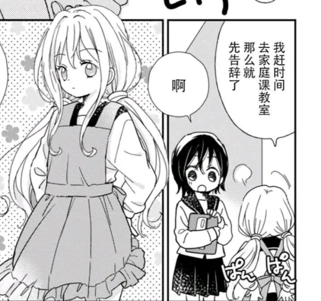 第二格特写:女配的主观视角,大格子在次强化爱瑠子可爱的能力和专一的性格突出表现人物,背景放空,正方形格子破格处理