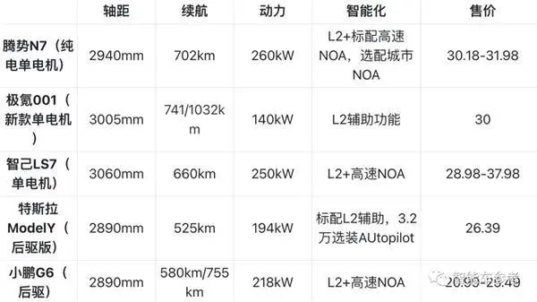 ❷与转型的老牌车企车型对比,比如极氪001,腾势N7的先进智能化能力,是它的最大优势。