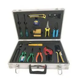 3、工具箱内至少包含:双口光纤剥线钳1把;罗屏汉1把;凯夫拉剪刀1把;光缆松套管开剥器1把;钢丝钳(7寸)1把;斜口钳(6寸)1把;活动扳手(8寸)1把;光缆加芯剪断钳1把;18件组合螺丝刀1套;增强型工具箱1个;光缆横向开剥刀1把;精密钟表螺丝批组1套;新型带锁酒精泵1个;吹气球还清洁毛刷1个;高亮度手电筒1个;精密摄子1个;实用电工刀1个;3.5米卷尺1个;黑色记号笔1支。
