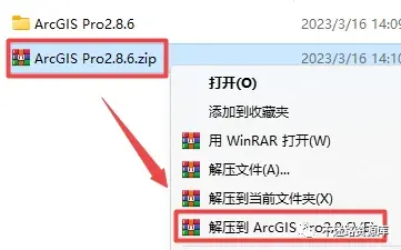 1.选中下载的压缩包,然后鼠标右键选择解压到"ArcGIS Pro2.8.6"(没有解压选项点这里)