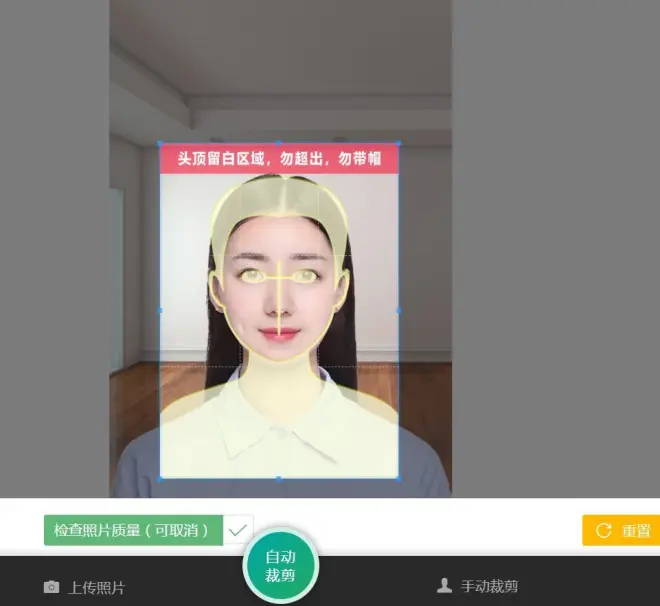 4、上传照片,报名电子照助手会自动完成照片裁剪、换背景色和压缩等工作。
