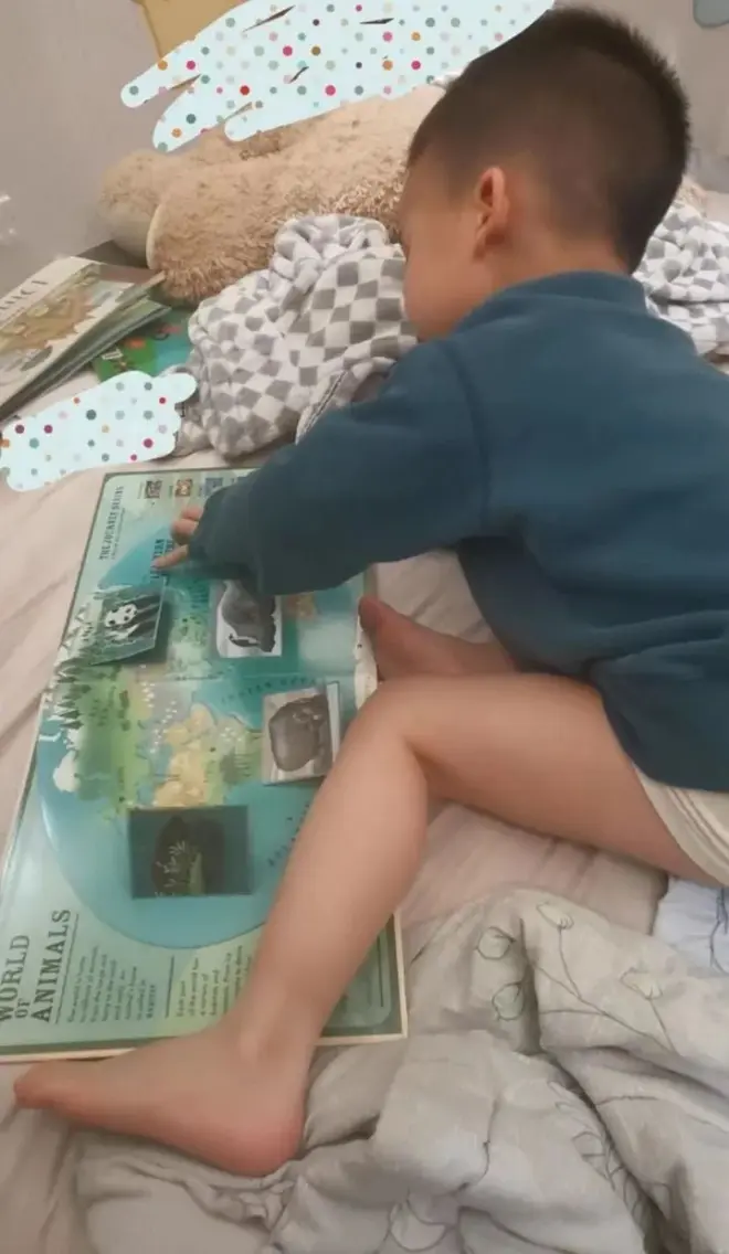 这个阶段也不求他能懂啥,能了解书是什么,能感受到妈妈很爱他,愿意和他读书聊天唱儿歌,以及阅读是一件快乐好玩的事,我就心满意足了。