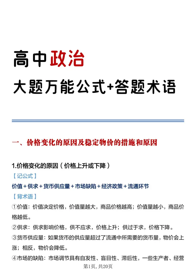 高中政治大题想拿满分:万能答题公式+答题模板要记住