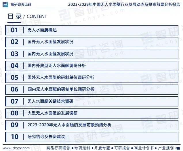 为方便行业人士或投资者更进一步了解无人水面艇行业现状与前景,智研咨询特推出《2023-2029年中国无人水面艇行业发展动态及投资前景分析报告》(以下简称《报告》)。报告对中国无人水面艇市场做出全面梳理和深入分析,是智研咨询多年连续追踪、实地走访、调研和分析成果的呈现。