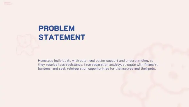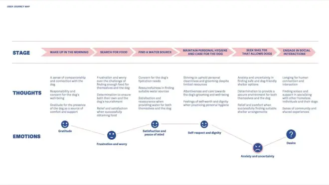 该项目专注于帮助有宠物的无家可归者重新融入社会的问题。通过广泛的研究和采访,我们打破了围绕无家可归的刻板印象和误解,意识到他们往往是受害者,面临无辜的攻击和频繁的盗窃。有宠物的无家可归者面临着更大的挑战,因为社会往往无法理解和接受他们与动物的联系。因此,他们得到的帮助比不养宠物的人少,照顾宠物会增加经济负担。尽管处境如此,但这些人具有强烈的责任感,愿意与宠物重新融入社会,但机会很少。