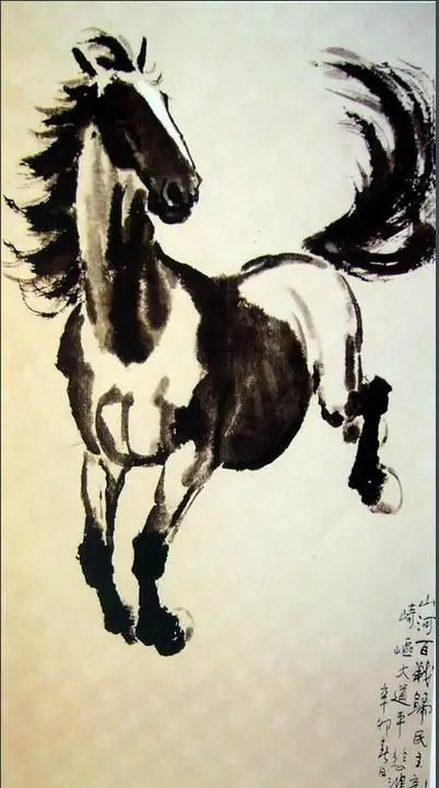 马,是徐悲鸿先生一生中最爱描绘的题材。他画的奔马,笔墨淋漓潇洒,带着时代的风雷驰骋在画坛上,给当时的中国画坛带来了清新、有力、刚劲的气息。