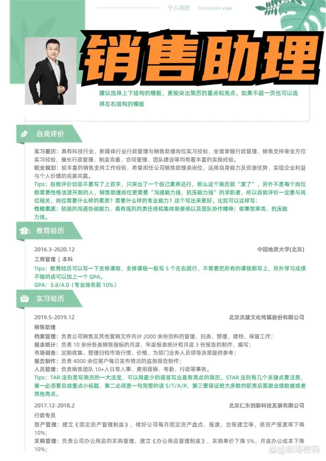 销售助理岗位求职简历中应该展现以下专业技能和综合素质: