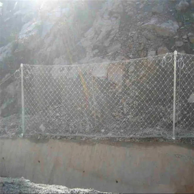 环形被动防护网在设计上不但要考虑易于安装,同时还兼顾其在像悬崖这样的恶劣地形条件下能实现这种安装,即用少量的锚固和少量的开挖来实现快速简便的施工安装。钢丝绳锚杆与钢柱间连接的钢丝绳,根据其作用功能和位置的不同分为上拉锚绳、下拉锚绳、侧拉及中间加固拉锚绳,其主要作用是对整个sns防护系统起加固作用,以此使整个系统的稳定性得以确保,防止系统遭受落石冲击时发生整体倾倒,并实现残余冲击荷载终向地层的传递。