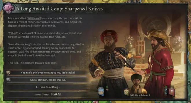 本质上说,摄政者发动政变的危险,你总是能预见的。你可以看到谁是你的摄政者,你可以看到他们对你的看法(我们在其他部分会提到摄政忠诚度),你可以看到他们在权力天枰上努力提升。