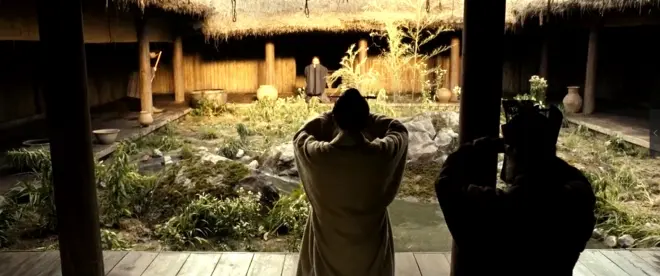 韩信赴死前那场戏是最精彩部分,演员于无声中把“兔死狗烹”的悲凉感演绎得淋漓极致。萧何宣布吕后宴请旨意,韩信知是阴谋百感交集,眼神由怀疑(吕后为何宴请我?),与萧何眼神交流之后,嘴角稍微一动,似笑非笑,轻点头,眼中有了然于心(陛下要杀我)的悲哀和不甘,转而认命。转头看一眼张良(张良),眼神转而凌厉,他深知张良必定参与了对自己的“阴谋”。而一句“韩信兄”,韩信转而释然,命运不是一个张良能左右的,他位高权重,无论如何对帝王来说都是威胁,必死无疑。