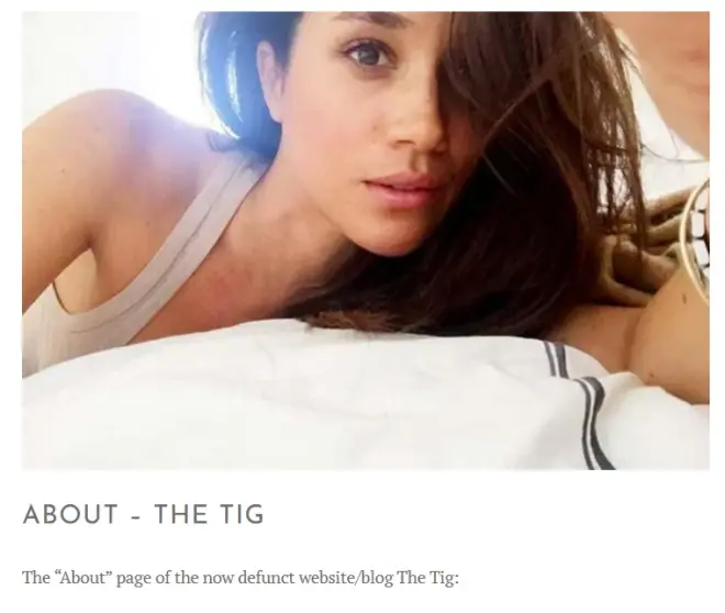 梅根在跟哈里交往之前就做了个网站(博客)The Tig。根据梅根的描述,她这个网站是分享她在衣食住行上的见解、小贴士。