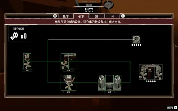 此外玩家还能够使用研究材料来解锁新型的渔具,不过这玩意获取确实有点反人类了,游戏中支线给的完全不够升满,导致后期很长一段时间都需要刷商店里的研究材料。