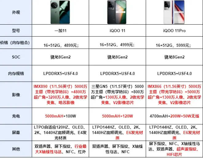 旗舰值得买的大内存手机:iQOO 11、iQOO 11Pro、一加11