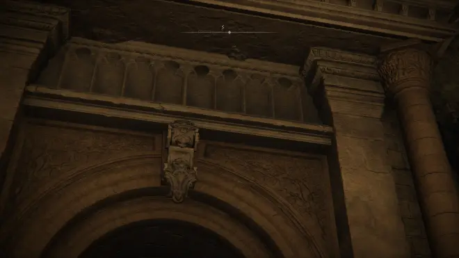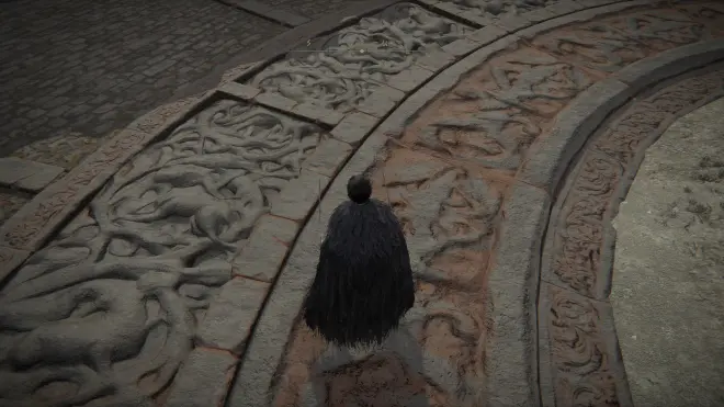 与一般坑道不同,战斗场地的大门不是矿坑的木栅栏,而是工整精致的石制拱门,无论柱形、柱头、拱心石、地砖,形制与东亚坛神授桥各处都高度类似。黑王场地内还散落着神授桥上常见的持剑者雕像。而黑王身处的陨石坑,外围的环形雕花,则与神授桥顶双指周围的一模一样。全游戏各坑道中,这是独一份的设计。