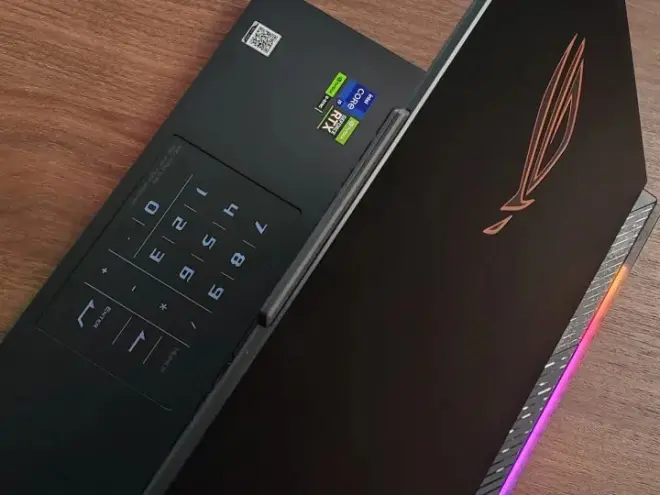 与枪神7Plus超竞不同的是,因为C面空间小,没有实体小键盘。但是可以长按触控板右上角开启发光的虚拟数字键盘。