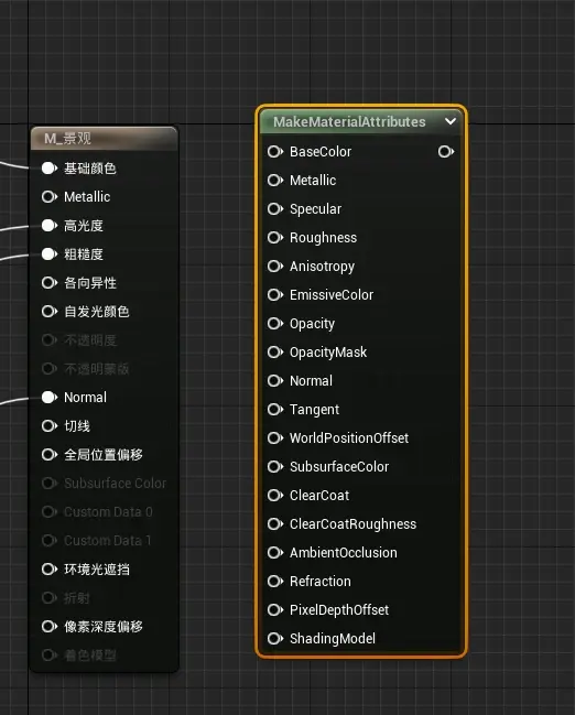 在材质中连接糙度和法线,其中糙度连绿色通道三合一贴图
