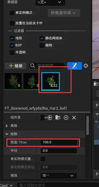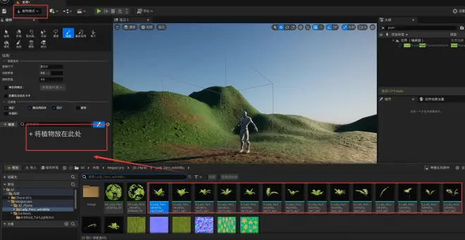 必须添加静态网格体植物,所以把现成植物做成静态网格