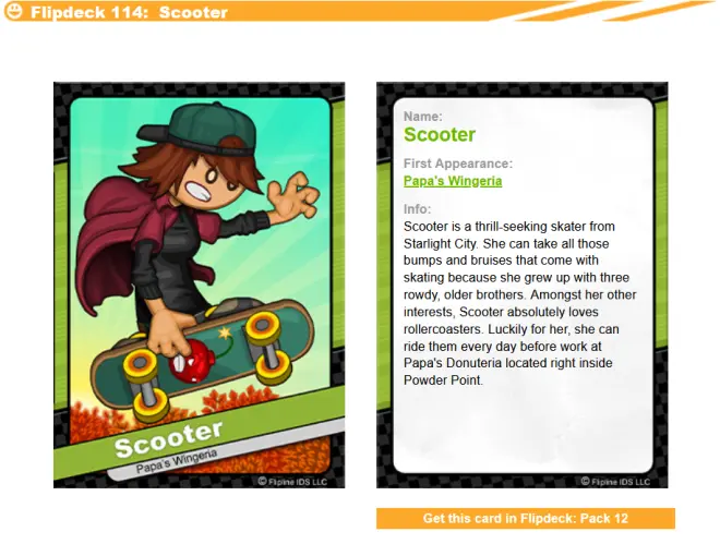 介绍:Scooter是星光市里的一个寻求刺激的滑板者。因为她和三个吵闹的哥哥一起长大的缘故。她能承受滑板时的所有颠簸和瘀伤,在她的其他爱好中,Scooter绝对喜欢过山车。幸运的是,她每天去老爹甜甜圈店上班前都能骑着滑板去泡打角里过山车。