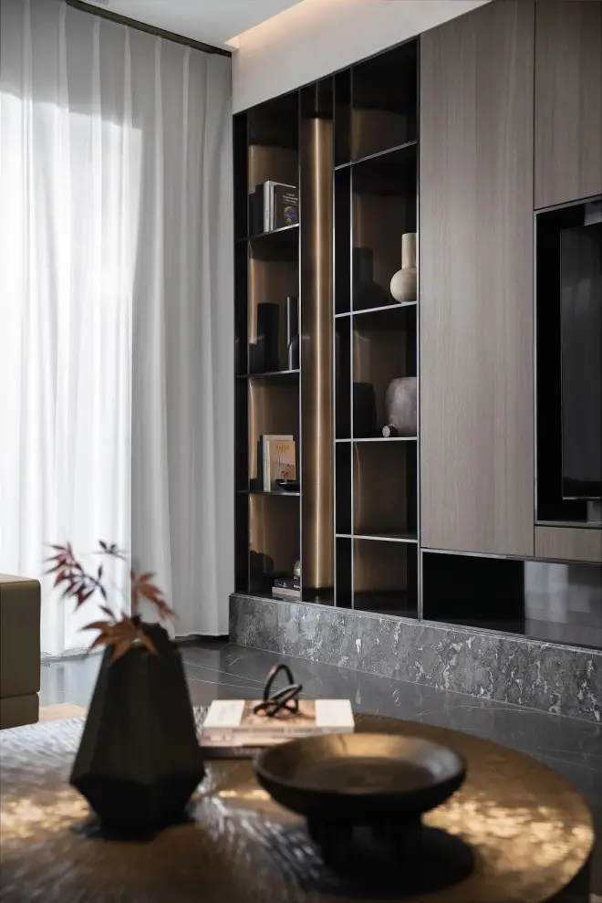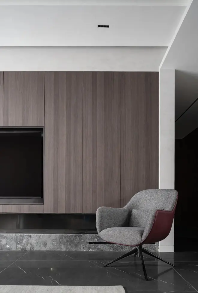 克制的空间气质,在深与浅色间显现宁静与包容,点缀的酒红色坐踏在冷静的色系里注入优雅与情绪。