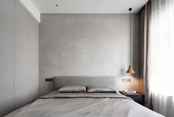 延伸公区的马来漆至卧室,色块清晰,简洁舒适,清晨背景音乐轻轻响起时智能窗帘系统打开,开启一天的悠然时光。