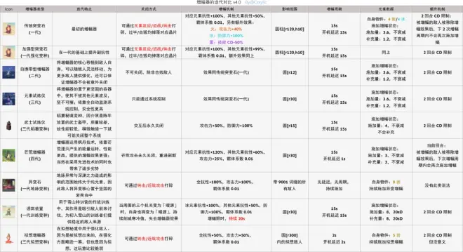 传统增幅器:对应元素抗性+100%,其他抗性+50%,霸体,分元素还有其他特殊效果;
