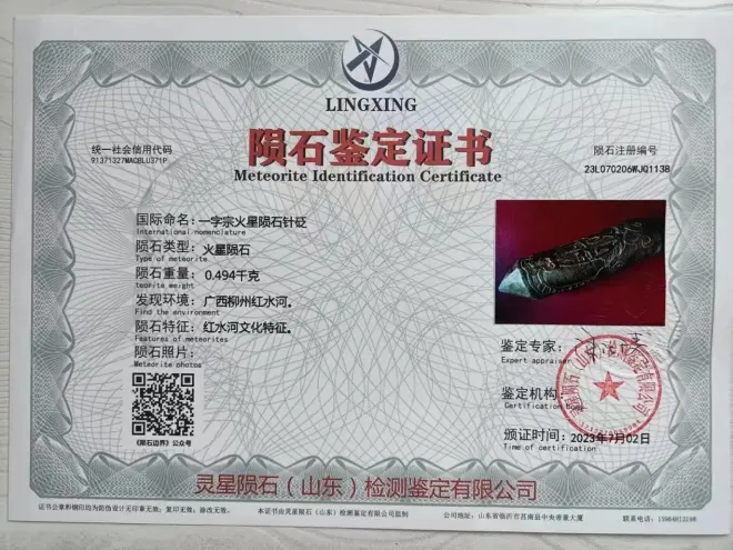 陨石是超自然的物体,是天外来客,上浮为星,散落为陨。或在路旁,或在园中,格物明理者见之,既能深思竭虑,查明此石之来历甚奇。球粒陨石不存在水硅酸盐,为纯阳之体,是阳中之精。陨石中所含有精微物质是:钛、镍、硫、镁、硅、铝、钙和氧(氢气),不但具有灵力,能防治疾病,而且随身携带,还可以驱邪辟疫,被古人奉之为神圣之物。