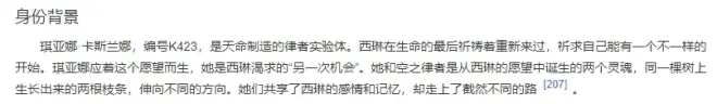 琪亚娜:生物学特征为克隆人,社会关系上继承了真琪。其父母都为天命支柱家族之一。作为现文明对抗崩坏最早的组织之一,天命几乎掌控了世界上的每一个角落(神秘的神州除外),只有逆熵与之分庭抗礼。其实用布尔乔亚的划分很难划分琪亚娜的出身。或许叫政治二代比较合适。(一代的父母都与奥托叛离)而卡斯兰娜家族本身也有一个政治理想——守护世界,守护人民。
