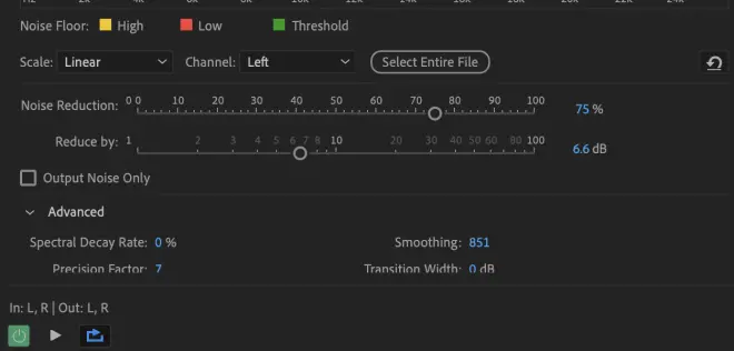 方式三: 使用Dynamic Process 选取特定分贝区间进行进行消除(也是昨天发现的方法)