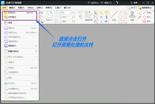 第一步 先将PDF编辑器打开,选择【打开】,将重要文件添加进来。