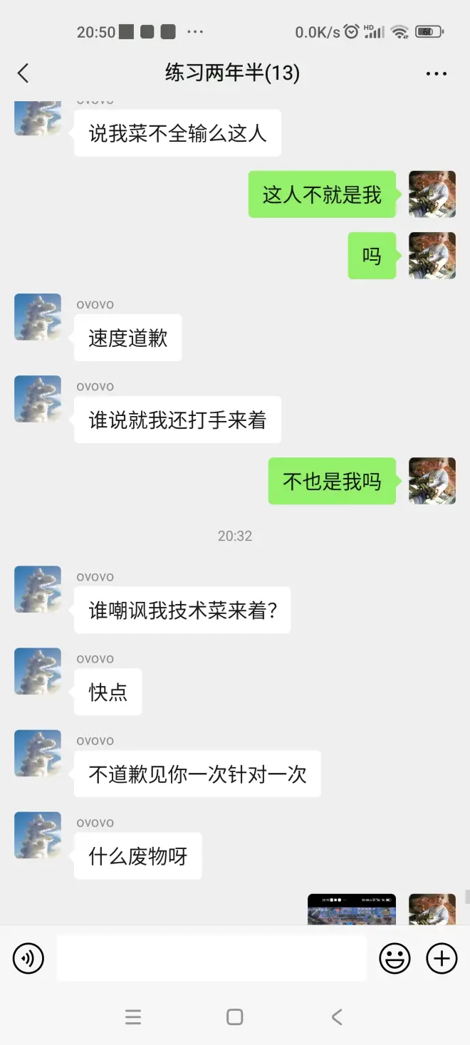 对比我 我觉得他还不配上面这张图的业务 会附一段切磋视频 所以你们觉得他配让 给他道歉吗