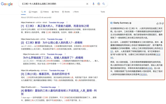 Glarity 是一款 Chrome 浏览器扩展,实现在 Google 搜索结果和 YouTube 视频旁边展示 ChatGPT 摘要。