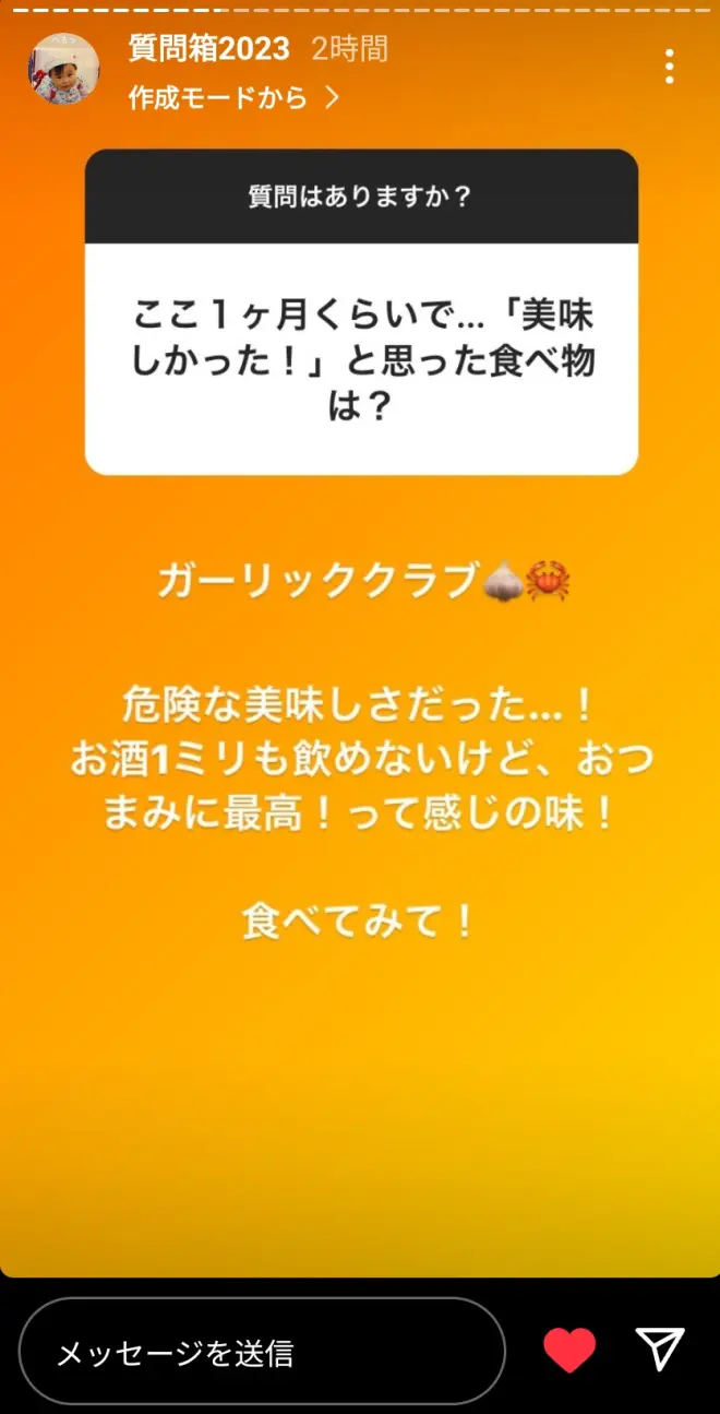 A1: RINA醬~~~~!!!最喜歡你了!🙋♀️ 我想吃牛橫隔膜和素麵🤤❤️
