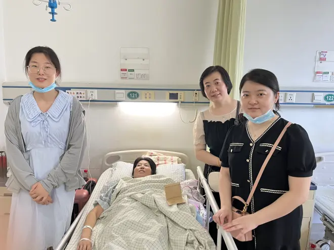 在医院病房,行政部吴主任和运营部黄主任真诚询问和了解员工家属身体状态和治疗情况,并嘱咐要保持乐观心态,积极接受并配合治疗,争取早日康复。同时,吴主任再三嘱咐徐晶晶一定要照顾好自己的母亲,承担起子女的责任,如果有困难,要第一时间告知公司,公司永远是她最坚实的后盾。