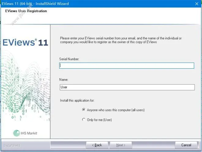 4、serial number需要进行注册,注册地址:http://register1.eviews.com/Lite/。
